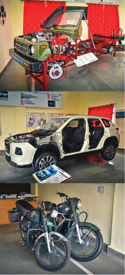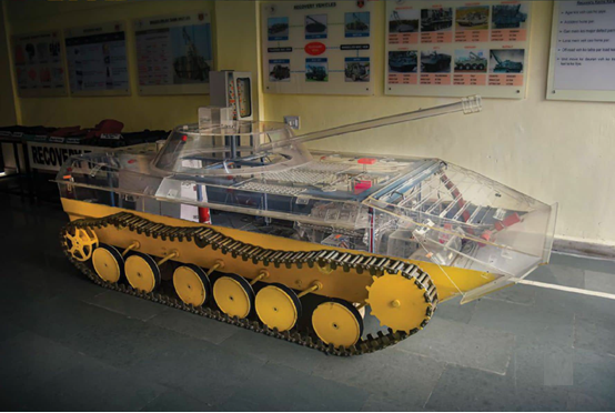 机械化步兵中心与学校在训练学员时采用跟装甲兵中心与学校相类似的做法,而且前者也拥有印度陆军在战时和平时巡逻中使用的所有车辆,这些车辆也是以剖面模型的形式陈列,每个零部件也是被拆解得非常彻底。在此,我们得以目睹传奇的“吉普赛人”越野车,这款车型迄今为止已在印度陆军中服役了四十多年,也是每个印度陆军官兵“发誓必备”的座驾。这并不意味着印度陆军落后,请千万不要在脑袋里存有这种想法;相反,他们现在正在深入研究混合动力汽车。