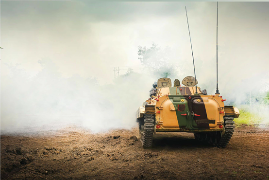 图30.这辆印度陆军的BMP-2步兵战车正在释放烟幕