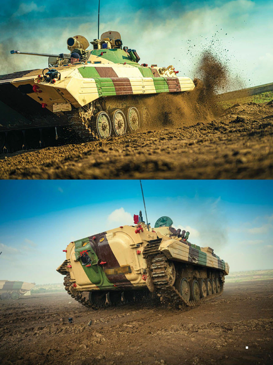 目前印度陆军装备使用的BMP系列战车是BMP-1和BMP-2,这两款战车都是多用途的杀戮机器,具备水上浮渡能力,因此它们也被称为水陆两栖战车。BMP-1和BMP-2战车还可以通过空运的方式进行“点对点”输送,这让它们具备了“准空降”能力。这款战车确实功能全面,能够满足多种需求。在其300马力发动机的驱动下,14吨重的金属车身可以飙到最高65公里/小时的速度。该车具备攻击各类地面及低空军事目标的能力(可使用机关炮弹和导弹进行攻击),并能通过制造浓密的烟幕来干扰敌人的观测。我甚至亲眼目睹过这款步兵战车在射击场上以激光般的精准度和极端残酷的方式消灭目标。